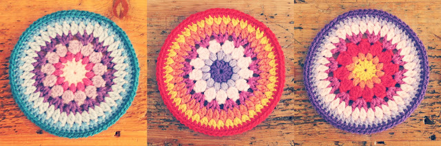 Coasters are great for using under cups, teapots, plants and so on, and it's always practical to have a few different sizes lying around. So I thought I'd share a pattern I made up the other day, featuring the first few rounds of the Sunburst Granny Pattern. Hope you enjoy!!